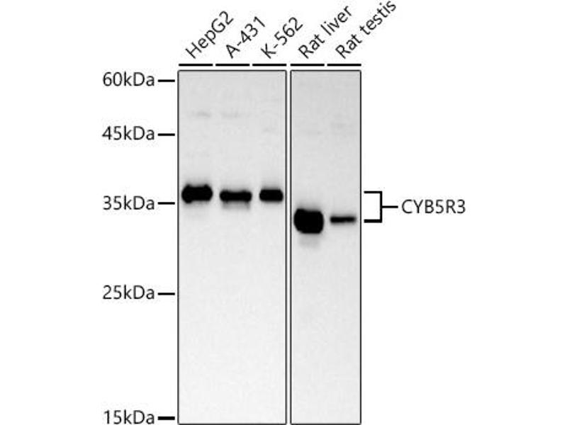 This gene encodes cytochrome b5 reductase, which includes a membrane-bound form in somatic cells (anchored in the endoplasmic reticulum, mitochondrial and other membranes) and a soluble form in erythrocytes. The membrane-bound form exists mainly on the cytoplasmic side of the endoplasmic reticulum and functions in desaturation and elongation of fatty acids, in cholesterol biosynthesis, and in drug metabolism. The erythrocyte form is located in a soluble fraction of circulating erythrocytes and is involved in methemoglobin reduction. The membrane-bound form has both membrane-binding and catalytic domains, while the soluble form has only the catalytic domain. Alternate splicing results in multiple transcript variants. Mutations in this gene cause methemoglobinemias.,CYB5R3,B5R,DIA1,Cancer,Signal Transduction,Endocrine & Metabolism,Lipid Metabolism,Cholesterol Metabolism,Drug metabolism,Cardiovascular,Lipids,CYB5R3