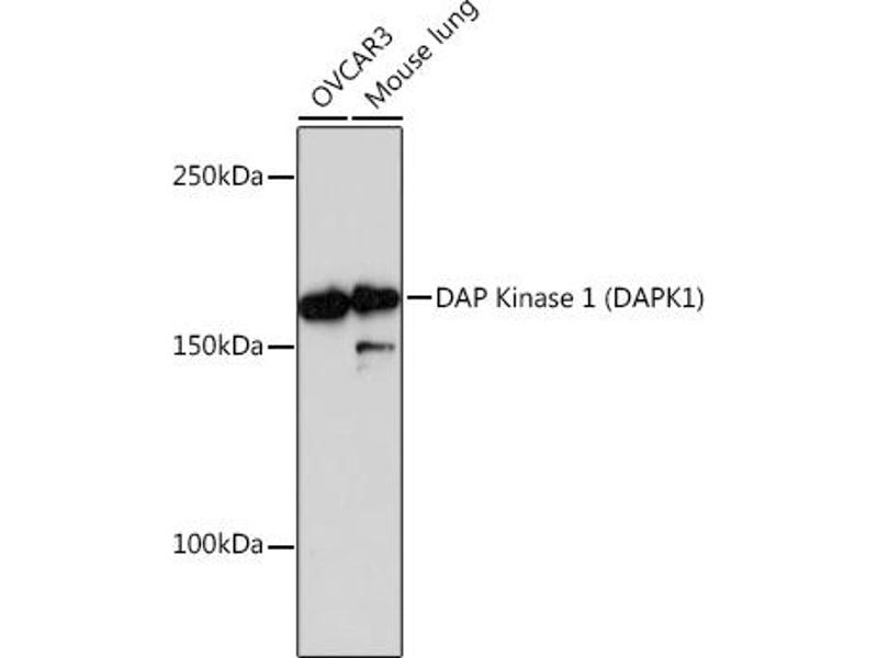 Der Kaninchen Monoklonal anti-DAP Kinase 1 Antikörper (ABIN7266711) detektiert spezifisch DAP Kinase 1 in WB.