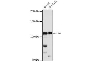 Der Kaninchen Polyklonal anti-DAXX Antikörper (ABIN7266714) detektiert spezifisch DAXX in WB.