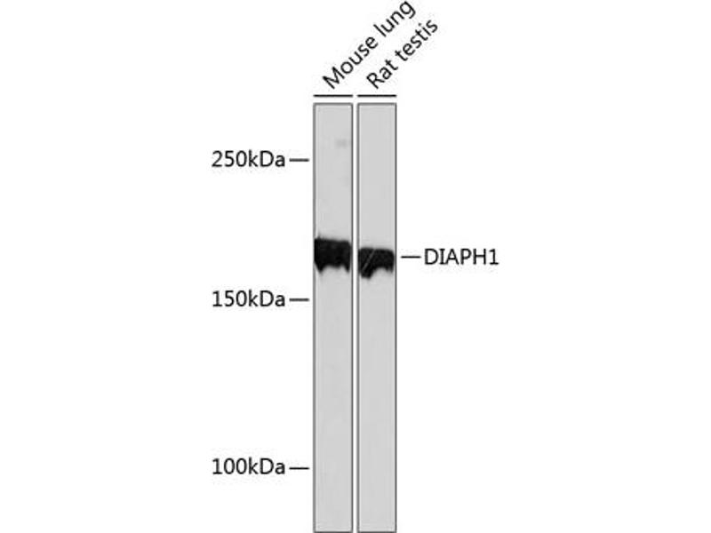 This gene is a homolog of the Drosophila diaphanous gene, and has been linked to autosomal dominant, fully penetrant, nonsyndromic sensorineural progressive low-frequency hearing loss. Actin polymerization involves proteins known to interact with diaphanous protein in Drosophila and mouse. It has therefore been speculated that this gene may have a role in the regulation of actin polymerization in hair cells of the inner ear. Alternatively spliced transcript variants encoding distinct isoforms have been found for this gene. [provided by RefSeq, Jul 2008],DFNA1, DIA1, DRF1, LFHL1, SCBMS, hDIA1,Cell Adhesion,Cell Biology & Developmental Biology,Cytoskeleton,Cytoskeleton_Actins,Cytoskeleton_Microfilaments,Cytoskeleton_Microtubules,Epigenetics & Nuclear Signaling,RNA Binding,Signal Transduction,TGF-b-Smad Signaling Pathway,DIAPH1