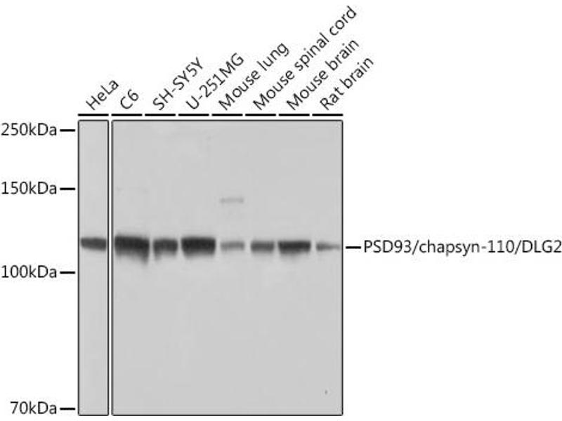 This gene encodes a member of the membrane-associated guanylate kinase (MAGUK) family. The encoded protein forms a heterodimer with a related family member that may interact at postsynaptic sites to form a multimeric scaffold for the clustering of receptors, ion channels, and associated signaling proteins. Multiple transcript variants encoding different isoforms have been found for this gene. Additional transcript variants have been described, but their full-length nature is not known. [provided by RefSeq, Dec 2008],PPP1R58, PSD-93, PSD93, chapsyn-110,Cell Type Marker,Cell Type Marker_Neuron marker,Cell Type Marker_Synapse marker,Neuroscience,Protein phosphorylation,DLG2