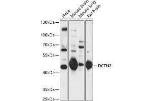 This gene encodes a 50-kD subunit of dynactin, a macromolecular complex consisting of 10-11 subunits ranging in size from 22 to 150 kD. Dynactin binds to both microtubules and cytoplasmic dynein. It is involved in a diverse array of cellular functions, including ER-to-Golgi transport, the centripetal movement of lysosomes and endosomes, spindle formation, chromosome movement, nuclear positioning, and axonogenesis. This subunit is present in 4-5 copies per dynactin molecule. It contains three short alpha-helical coiled-coil domains that may mediate association with self or other dynactin subunits. It may interact directly with the largest subunit (p150) of dynactin and may affix p150 in place. Multiple alternatively spliced transcript variants encoding distinct isoforms have been found for this gene.,DCTN2,DCTN50,DYNAMITIN,HEL-S-77,RBP50,Signal Transduction,Cell Biology & Developmental Biology,Cell Cycle,Centrosome,Cytoskeleton,Motor Proteins,Neuroscience,Neurodegenerative Diseases,DCTN2