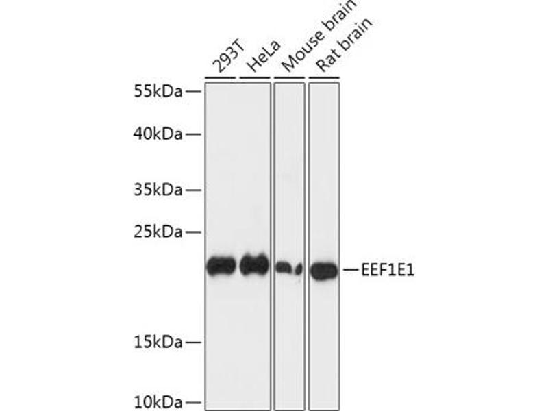 Der Kaninchen Polyklonal anti-EEF1E1 Antikörper (ABIN7267023) detektiert spezifisch EEF1E1 in WB und IF.