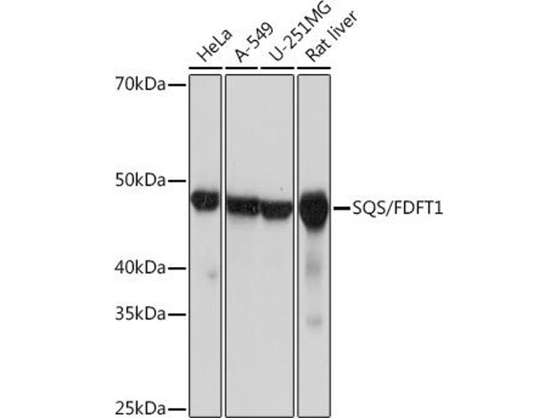 Der Kaninchen Monoklonal anti-FDFT1 Antikörper wird verwendet zum Nachweis von FDFT1 in Proben von Human. Er wurde validiert für WB.