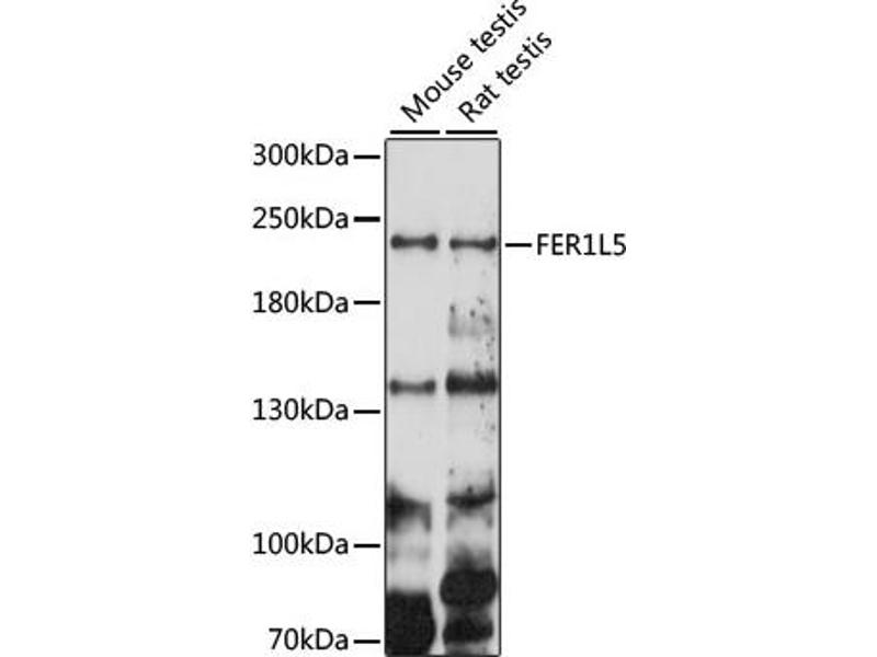 Der Kaninchen Polyklonal anti-FER1L5 Antikörper wird verwendet zum Nachweis von FER1L5 in Proben von Human. Er wurde validiert für IF und WB.