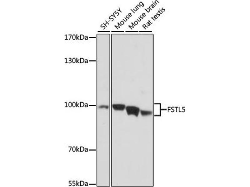 Der Kaninchen Polyklonal anti-FSTL5 Antikörper wird verwendet zum Nachweis von FSTL5 in Proben von Human. Er wurde validiert für WB und IF.