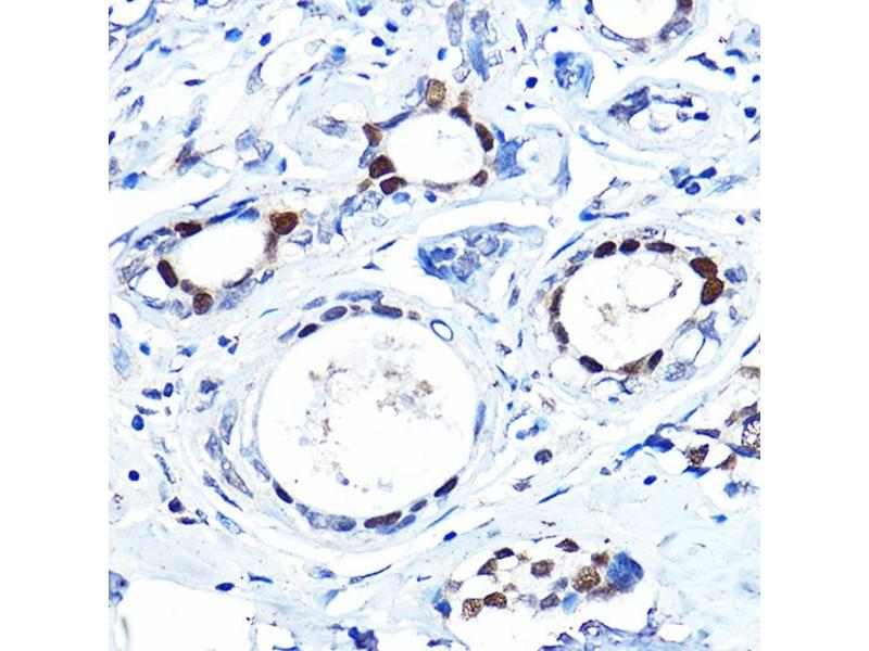 This gene encodes a member of the forkhead class of DNA-binding proteins. These hepatocyte nuclear factors are transcriptional activators for liver-specific transcripts such as albumin and transthyretin, and they also interact with chromatin. Similar family members in mice have roles in the regulation of metabolism and in the differentiation of the pancreas and liver.,FOXA1,HNF3A,TCF3A,Epigenetics & Nuclear Signaling,Transcription Factors,Cell Biology & Developmental Biology,Cell Adhesion,Wnt/β-Catenin Signaling Pathway,FOXA1