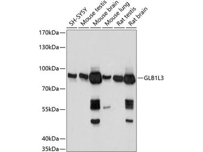 Der Kaninchen Polyklonal anti-GLB1L3 Antikörper wird verwendet zum Nachweis von GLB1L3 in Proben von Human. Er wurde validiert für WB.