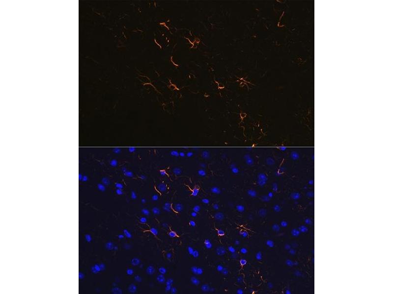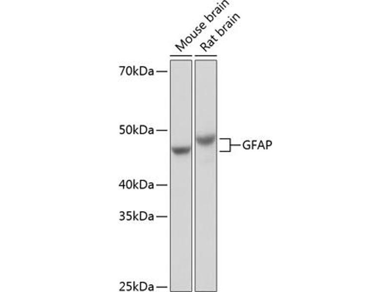 This gene encodes one of the major intermediate filament proteins of mature astrocytes. It is used as a marker to distinguish astrocytes from other glial cells during development. Mutations in this gene cause Alexander disease, a rare disorder of astrocytes in the central nervous system. Alternative splicing results in multiple transcript variants encoding distinct isoforms. [provided by RefSeq, Oct 2008],ALXDRD,GFAP,Cell Adhesion,Cell Biology & Developmental Biology,Cell Type Marker,Cell Type Marker_Astrocyte marker,Cell Type Marker_Microglia marker,Cytoskeleton,Cytoskeleton_Intermediate Filaments,Neural Stem Cells,Neuroscience,Signal Transduction,Stem Cells,GFAP