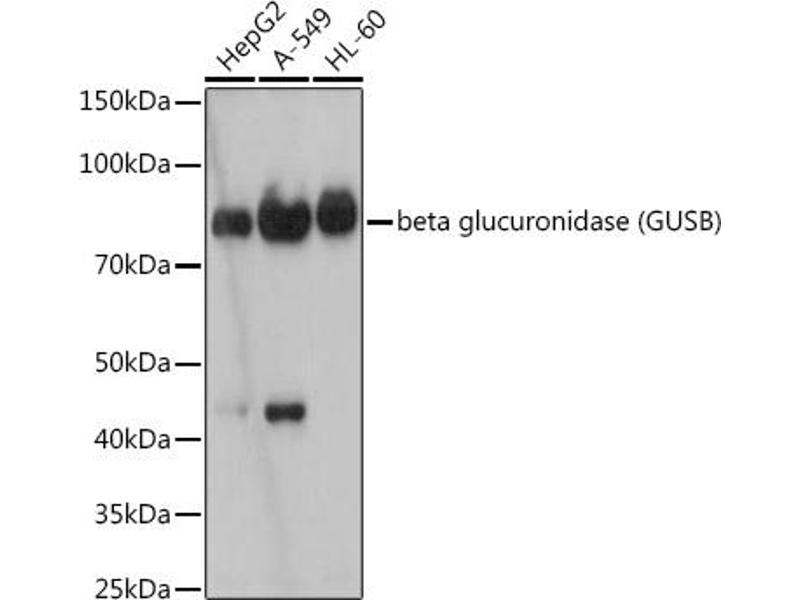 Der Kaninchen Monoklonal Anti-Glucuronidase beta Antikörper wurde für WB validiert. Er ist geeignet, Glucuronidase beta in Proben von Human zu detektieren.