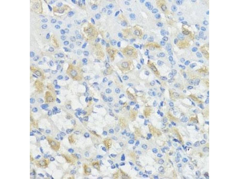 The protein encoded by this gene belongs to the glutathione peroxidase family, members of which catalyze the reduction of organic hydroperoxides and hydrogen peroxide (H2O2) by glutathione, and thereby protect cells against oxidative damage. Several isozymes of this gene family exist in vertebrates, which vary in cellular location and substrate specificity. This isozyme is predominantly expressed in the gastrointestinal tract (also in liver in human), is localized in the cytoplasm, and whose preferred substrate is hydrogen peroxide. Overexpression of this gene is associated with increased differentiation and proliferation in colorectal cancer. This isozyme is also a selenoprotein, containing the rare amino acid selenocysteine (Sec) at its active site. Sec is encoded by the UGA codon, which normally signals translation termination. The 3' UTRs of selenoprotein mRNAs contain a conserved stem-loop structure, designated the Sec insertion sequence (SECIS) element, that is necessary for the recognition of UGA as a Sec codon, rather than as a stop signal. Alternatively spliced transcript variants have been found for this gene.,GPX2;GI-GPx;GPRP;GPRP-2;GPx-2;GPx-GI;GSHPX-GI;GSHPx-2,Cell Biology & Developmental Biology,Endocrine & Metabolism,GPX2