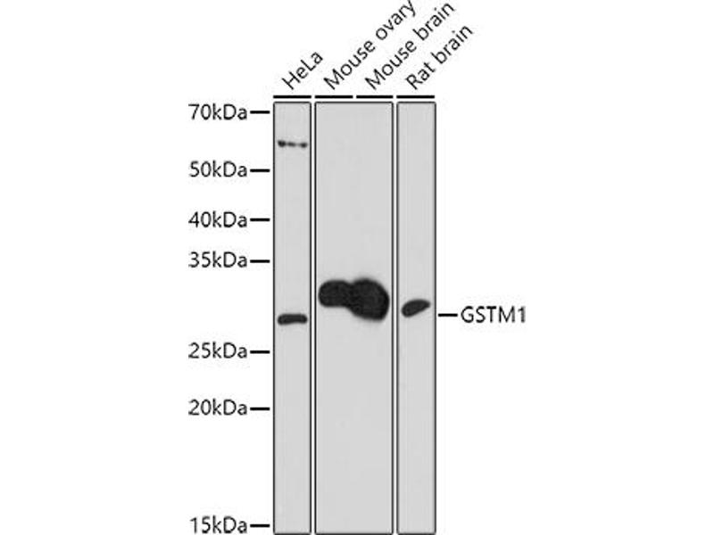 Cytosolic and membrane-bound forms of glutathione S-transferase are encoded by two distinct supergene families. At present, eight distinct classes of the soluble cytoplasmic mammalian glutathione S-transferases have been identified: alpha, kappa, mu, omega, pi, sigma, theta and zeta. This gene encodes a glutathione S-transferase that belongs to the mu class. The mu class of enzymes functions in the detoxification of electrophilic compounds, including carcinogens, therapeutic drugs, environmental toxins and products of oxidative stress, by conjugation with glutathione. The genes encoding the mu class of enzymes are organized in a gene cluster on chromosome 1p13.3 and are known to be highly polymorphic. These genetic variations can change an individual's susceptibility to carcinogens and toxins as well as affect the toxicity and efficacy of certain drugs. Null mutations of this class mu gene have been linked with an increase in a number of cancers, likely due to an increased susceptibility to environmental toxins and carcinogens. Multiple protein isoforms are encoded by transcript variants of this gene. [provided by RefSeq, Jul 2008],GST1;GSTM1-1;GSTM1a-1a;GSTM1b-1b;GTH4;GTM1;H-B;MU;MU-1;GSTM1,Cancer,Signal Transduction,Cell Biology & Developmental Biology,Endocrine & Metabolism,Drug metabolism,GSTM1