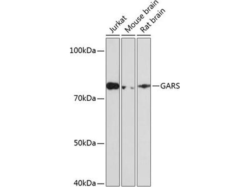 This gene encodes glycyl-tRNA synthetase, one of the aminoacyl-tRNA synthetases that charge tRNAs with their cognate amino acids. The encoded enzyme is an (alpha)2 dimer which belongs to the class II family of tRNA synthetases. It has been shown to be a target of autoantibodies in the human autoimmune diseases, polymyositis or dermatomyositis. Two transcript variants encoding different isoforms have been found for this gene. [provided by RefSeq, Oct 2015],CMT2D, DSMAV, GlyRS, HMN5, SMAD1,Endocrine & Metabolism,Epigenetics & Nuclear Signaling,Mitochondrial metabolism,GARS