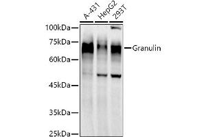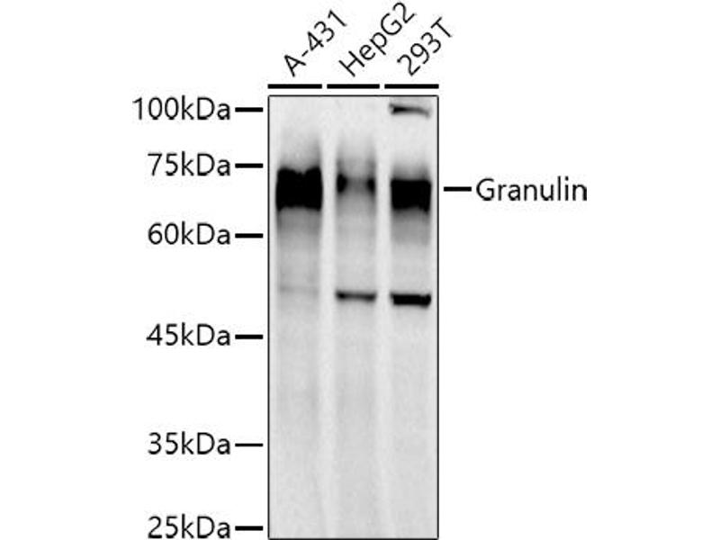 Der Kaninchen Monoklonal Anti-Granulin-Antikörper wurde für WB validiert. Er ist geeignet, Granulin in Proben von Human zu detektieren.