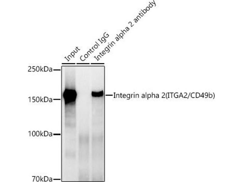 This gene encodes the alpha subunit of a transmembrane receptor for collagens and related proteins. The encoded protein forms a heterodimer with a beta subunit and mediates the adhesion of platelets and other cell types to the extracellular matrix. Loss of the encoded protein is associated with bleeding disorder platelet-type 9. Antibodies against this protein are found in several immune disorders, including neonatal alloimmune thrombocytopenia. This gene is located adjacent to a related alpha subunit gene. Alternative splicing results in multiple transcript variants. [provided by RefSeq, Aug 2012],BR,CD49B,GPIa,HPA-5,VLA-2,VLAA2,ITGA2,Cancer,CDs,Cell Adhesion,Cell Biology & Developmental Biology,Cytoskeleton,Endocrine & Metabolism,Immunology & Inflammation,MAPK-Erk Signaling Pathway,PI3K-Akt Signaling Pathway,Signal Transduction,ITGA2