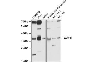 The protein encoded by this gene belongs to the cytokine receptor family. It is an accessory chain essential for the active interleukin 10 receptor complex. Coexpression of this and IL10RA proteins has been shown to be required for IL10-induced signal transduction. This gene and three other interferon receptor genes, IFAR2, IFNAR1, and IFNGR2, form a class II cytokine receptor gene cluster located in a small region on chromosome 21.,IL10RB,CDW210B,CRF2-4,CRFB4,D21S58,D21S66,IL-10R2,Signal Transduction,Immunology & Inflammation,CD markers,Cytokines,Interleukins,Cell Intrinsic Innate Immunity Signaling Pathway,IL10RB