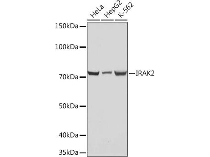 Der Kaninchen Monoklonal anti-IRAK2 Antikörper wird verwendet zum Nachweis von IRAK2 in Proben von Human. Er wurde validiert für WB und IHC.