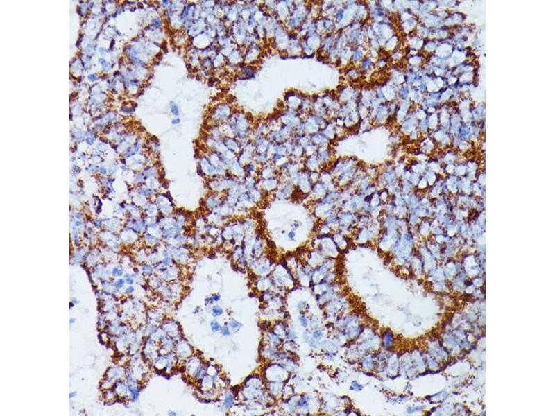 - Isocitrate dehydrogenases catalyze the oxidative decarboxylation of isocitrate to 2-oxoglutarate. These enzymes belong to two distinct subclasses, one of which utilizes NAD(+) as the electron acceptor and the other NADP(+). Five isocitrate dehydrogenases have been reported: three NAD(+)-dependent isocitrate dehydrogenases, which localize to the mitochondrial matrix, and two NADP(+)-dependent isocitrate dehydrogenases, one of which is mitochondrial and the other predominantly cytosolic. NAD(+)-dependent isocitrate dehydrogenases catalyze the allosterically regulated rate-limiting step of the tricarboxylic acid cycle. Each isozyme is a heterotetramer that is composed of two alpha subunits, one beta subunit, and one gamma subunit. The protein encoded by this gene is the alpha subunit of one isozyme of NAD(+)-dependent isocitrate dehydrogenase.,IDH3A,Cancer,Signal Transduction,Endocrine & Metabolism,Mitochondrial metabolism,Mitochondrial markers,IDH3A