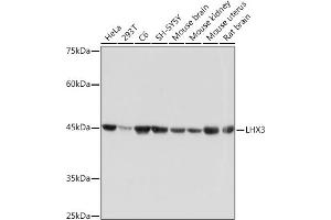 - This gene encodes a member of a large family of proteins which carry the LIM domain, a unique cysteine-rich zinc-binding domain. The encoded protein is a transcription factor that is required for pituitary development and motor neuron specification. Mutations in this gene cause combined pituitary hormone deficiency 3. Alternative splicing results in multiple transcript variants encoding different isoforms. [provided by RefSeq, Dec 2015],CPHD3, LIM3, M2-LHX3,Cell Biology & Developmental Biology,Epigenetics & Nuclear Signaling,Stem Cells,Transcription Factors,LHX3