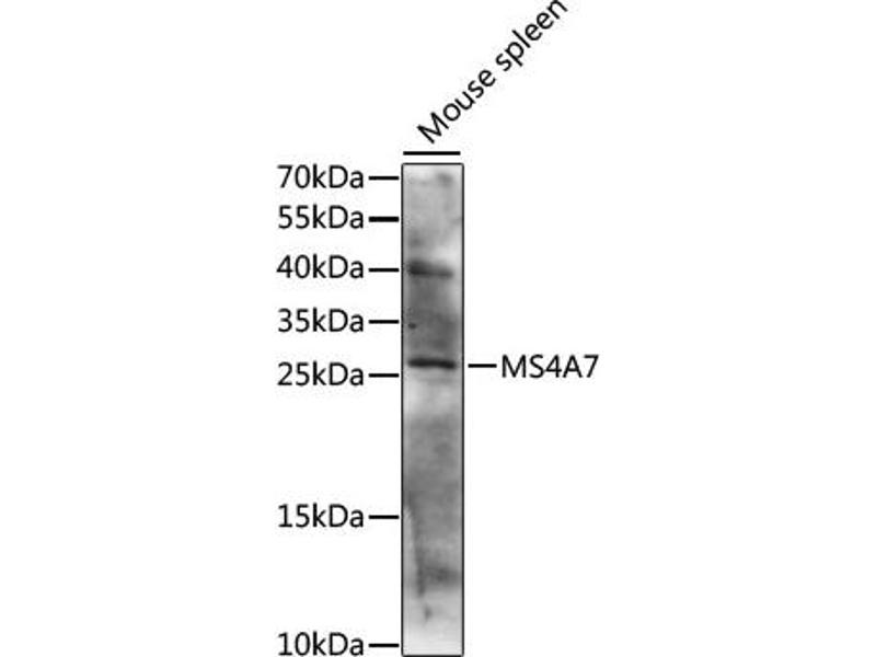 Der Kaninchen Polyklonal anti-MS4A7 Antikörper (ABIN7268475) detektiert spezifisch MS4A7 in WB.