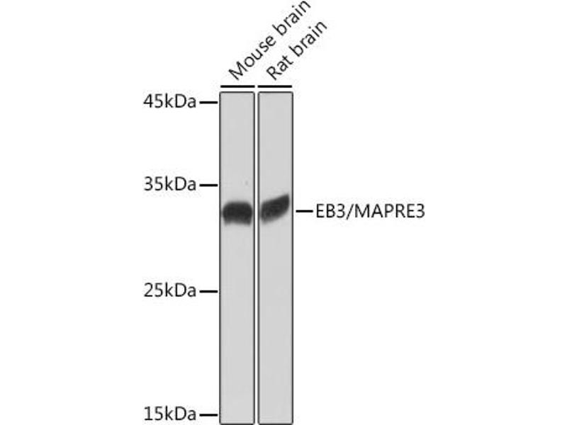 Der Kaninchen Monoklonal anti-MAPRE3 Antikörper (ABIN7268535) detektiert spezifisch MAPRE3 in WB und IF.