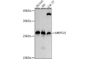 Mammalian mitochondrial ribosomal proteins are encoded by nuclear genes and help in protein synthesis within the mitochondrion. Mitochondrial ribosomes (mitoribosomes) consist of a small 28S subunit and a large 39S subunit. They have an estimated 75 % protein to rRNA composition compared to prokaryotic ribosomes, where this ratio is reversed. Another difference between mammalian mitoribosomes and prokaryotic ribosomes is that the latter contain a 5S rRNA. Among different species, the proteins comprising the mitoribosome differ greatly in sequence, and sometimes in biochemical properties, which prevents easy recognition by sequence homology. This gene encodes a 28S subunit protein that belongs to the ribosomal protein S15P family. The encoded protein is more than two times the size of its E. coli counterpart, with the 12S rRNA binding sites conserved. Between human and mouse, the encoded protein is the least conserved among small subunit ribosomal proteins. Pseudogenes corresponding to this gene are found on chromosomes 15q and 19q.,MRPS15, DC37, MPR-S15, RPMS15, S15mt, mitochondrial ribosomal protein S15,Epigenetics & Nuclear Signaling,RNA Binding,MRPS15