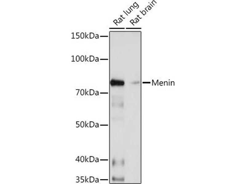 Der Kaninchen Monoklonal anti-Menin Antikörper (ABIN7268697) detektiert spezifisch Menin in WB.