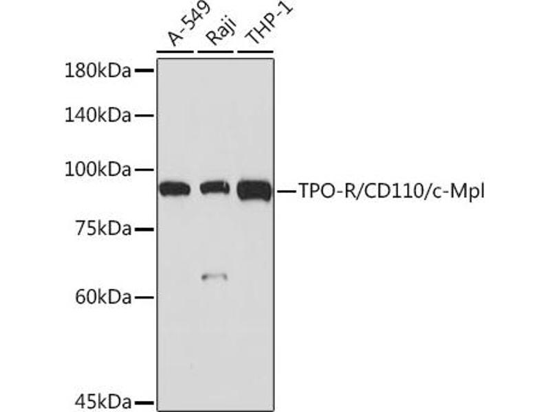 Der Kaninchen Monoklonal anti-MPL Antikörper (ABIN7268727) detektiert spezifisch MPL in WB.