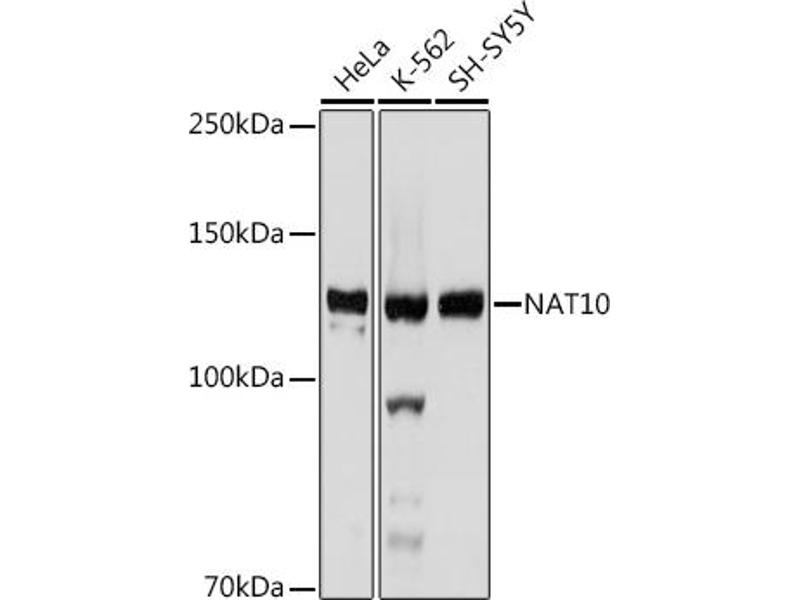 Der Kaninchen Monoklonal anti-NAT10 Antikörper wird verwendet zum Nachweis von NAT10 in Proben von Human. Er wurde validiert für WB und IHC.