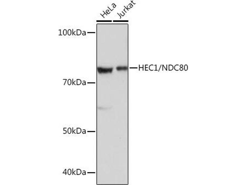 Der Kaninchen Monoklonal anti-NDC80 Antikörper (ABIN7268835) detektiert spezifisch NDC80 in WB.