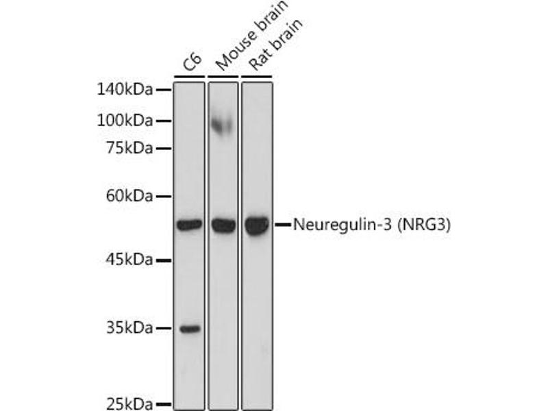 Der Kaninchen Monoklonal anti-Neuregulin 3 Antikörper (ABIN7268859) detektiert spezifisch Neuregulin 3 in WB.