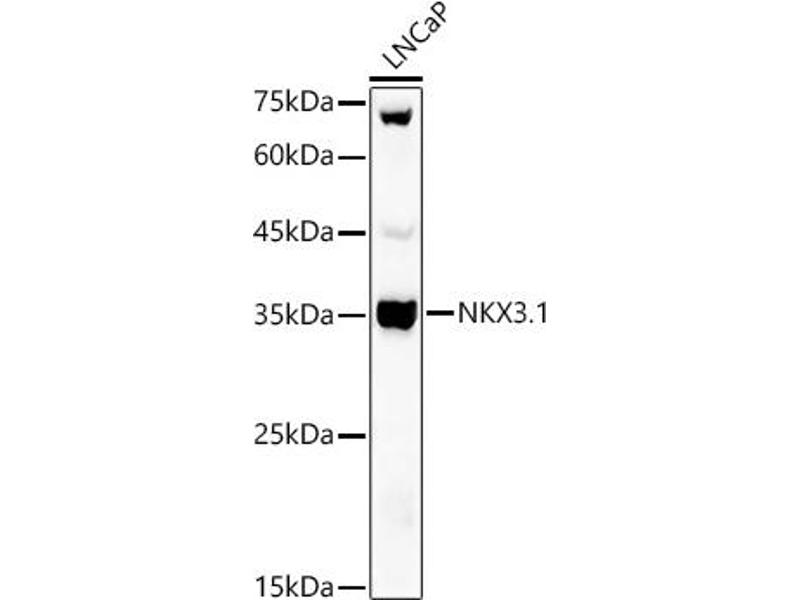 This gene encodes a homeobox-containing transcription factor. This transcription factor functions as a negative regulator of epithelial cell growth in prostate tissue. Aberrant expression of this gene is associated with prostate tumor progression. Alternate splicing results in multiple transcript variants of this gene. [provided by RefSeq, Jan 2012],BAPX2, NKX3, NKX3.1, NKX3A,Epigenetics & Nuclear Signaling,Transcription Factors,NKX3-1
