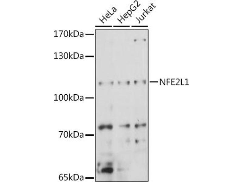 Der Kaninchen Polyklonal anti-NFE2L1 Antikörper wird verwendet zum Nachweis von NFE2L1 in Proben von Human. Er wurde validiert für WB, IHC und IF.