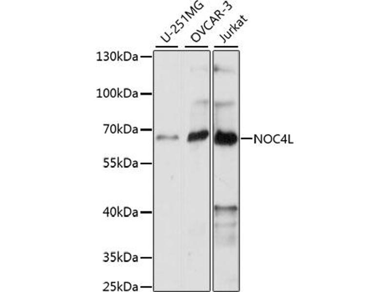 Der Kaninchen Polyklonal anti-NOC4L Antikörper wird verwendet zum Nachweis von NOC4L in Proben von Human. Er wurde validiert für WB.