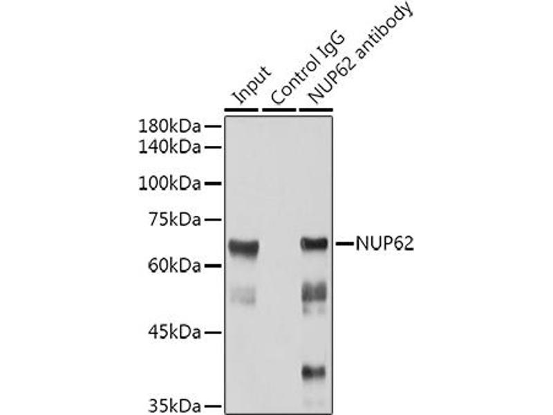 - The nuclear pore complex is a massive structure that extends across the nuclear envelope, forming a gateway that regulates the flow of macromolecules between the nucleus and the cytoplasm. Nucleoporins are the main components of the nuclear pore complex in eukaryotic cells. The protein encoded by this gene is a member of the FG-repeat containing nucleoporins and is localized to the nuclear pore central plug. This protein associates with the importin alpha/beta complex which is involved in the import of proteins containing nuclear localization signals. Multiple transcript variants of this gene encode a single protein isoform.,NUP62, IBSN, SNDI, p62, nucleoporin 62,Epigenetics & Nuclear Signaling,Nuclear Receptor Signaling,Signal Transduction,Cell Biology & Developmental Biology,Apoptosis,Growth factor,EGF,NUP62