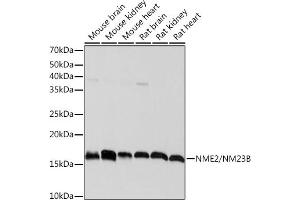 Nucleoside diphosphate kinase (NDK) exists as a hexamer composed of 'A' (encoded by NME1) and 'B' (encoded by this gene) isoforms. Multiple alternatively spliced transcript variants have been found for this gene. Read-through transcription from the neighboring upstream gene (NME1) generates naturally-occurring transcripts (NME1-NME2) that encode a fusion protein comprised of sequence sharing identity with each individual gene product. [provided by RefSeq, Nov 2010],NDKB, NDPK-B, NDPKB, NM23-H2, NM23B, PUF,NME2