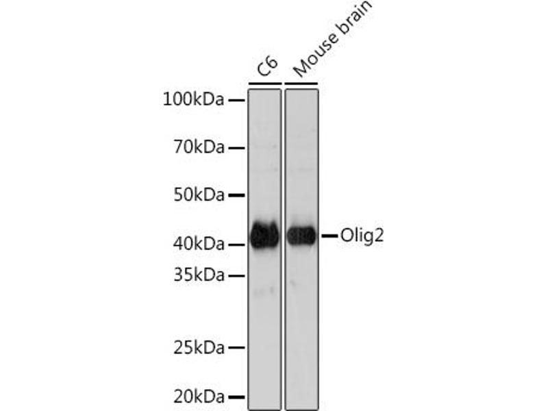 Der Kaninchen Monoklonal anti-OLIG2 Antikörper (ABIN7269090) detektiert spezifisch OLIG2 in WB.