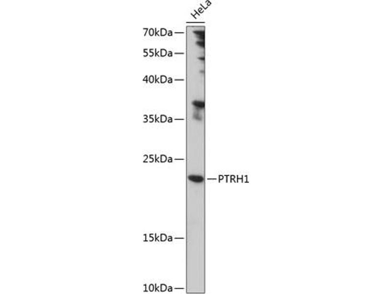 Der Kaninchen Polyklonal anti-PTRH1 Antikörper (ABIN7269210) detektiert spezifisch PTRH1 in WB.