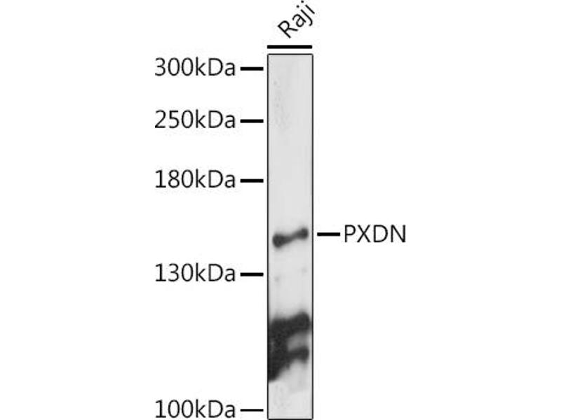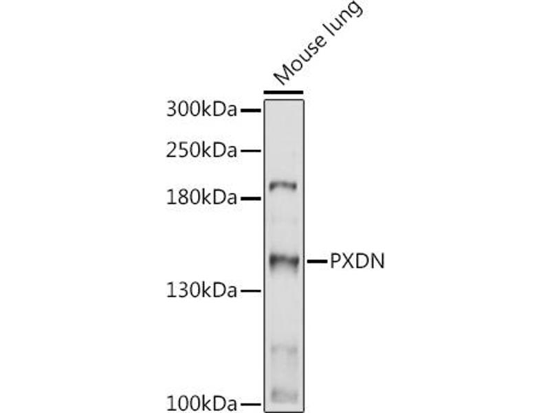 This gene encodes a heme-containing peroxidase that is secreted into the extracellular matrix. It is involved in extracellular matrix formation, and may function in the physiological and pathological fibrogenic response in fibrotic kidney. Mutations in this gene cause corneal opacification and other ocular anomalies, and also microphthalmia and anterior segment dysgenesis.,PXN,VPO,MG50,PRG2,ASGD7,COPOA,D2S448,D2S448E,PXDN,Signal Transduction,Cell Biology & Developmental Biology,Cytoskeleton,Extracellular Matrix,PXDN