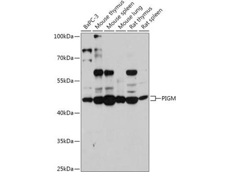 Der Kaninchen Polyklonal anti-PIGM Antikörper (ABIN7269294) detektiert spezifisch PIGM in WB, IHC und IF.