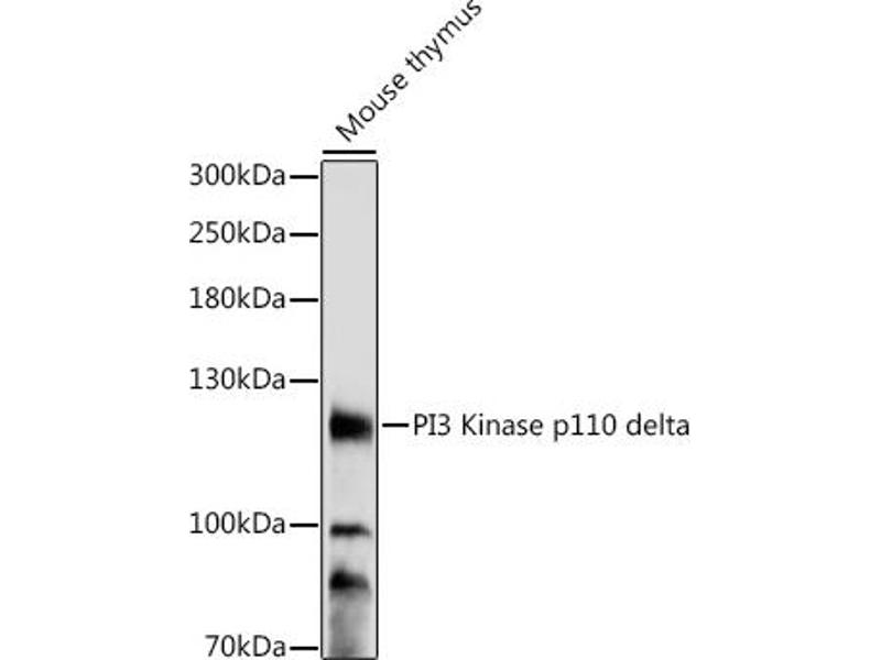 Phosphoinositide 3-kinases (PI3Ks) phosphorylate inositol lipids and are involved in the immune response. The protein encoded by this gene is a class I PI3K found primarily in leukocytes. Like other class I PI3Ks (p110-alpha p110-beta, and p110-gamma), the encoded protein binds p85 adapter proteins and GTP-bound RAS. However, unlike the other class I PI3Ks, this protein phosphorylates itself, not p85 protein.,PIK3CD,APDS,IMD14,P110DELTA,PI3K,p110D,Epigenetics & Nuclear Signaling,Translation Control,Regulation of eIF4 and p70 S6 Kinase,Signal Transduction,Kinase,PI3K-Akt Signaling Pathway,mTOR Signaling Pathway,Protein Kinase C Signaling Pathway,ErbB-HER Signaling Pathway,MAPK-Erk Signaling Pathway,MAPK-JNK Signaling Pathway,Cell Biology & Developmental Biology,Apoptosis,Mitochondrial Control of Apoptosis,Inhibition of Apoptosis,Cell Adhesion,Cytoskeleton,Microtubules,Actins,TGF-b-Smad Signaling Pathway,ESC Pluripotency and Differentiation,Endocrine & Metabolism,Lipid Metabolism,AMPK Signaling Pathway,Insulin Receptor Signaling Pathway,Warburg Effect,Immunology & Inflammation,B Cell Receptor Signaling Pathway,T Cell Receptor Signaling Pathway,IL-6 Receptor Signaling Pathway,NF-kB Signaling Pathway,Toll-like Receptor Signaling Pathway,Cell Intrinsic Innate Immunity Signaling Pathway,TLR Signaling,Cardiovascular,Angiogenesis,PI3Ks and related,PIK3CD