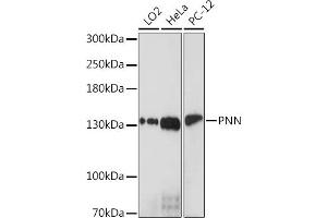 Transcriptional activator binding to the E-box 1 core sequence of the E-cadherin promoter gene, the core-binding sequence is 5'CAGGTG-3'. Capable of reversing CTBP1-mediated transcription repression. Auxiliary component of the splicing-dependent multiprotein exon junction complex (EJC deposited at splice junction on mRNAs. The EJC is a dynamic structure consisting of core proteins and several peripheral nuclear and cytoplasmic associated factors that join the complex only transiently either during EJC assembly or during subsequent mRNA metabolism. Participates in the regulation of alternative pre-mRNA splicing. Associates to spliced mRNA within 60 nt upstream of the 5'-splice sites. Component of the PSAP complex which binds RNA in a sequence-independent manner and is proposed to be recruited to the EJC prior to or during the splicing process and to regulate specific excision of introns in specific transcription subsets. Involved in the establishment and maintenance of epithelia cell-cell adhesion. Potential tumor suppressor for renal cell carcinoma.,PNN,DRS,DRSP,SDK3,memA,pinin,Epigenetics & Nuclear Signaling,Transcription Factors,RNA Binding,Cancer,Tumor suppressors,PNN