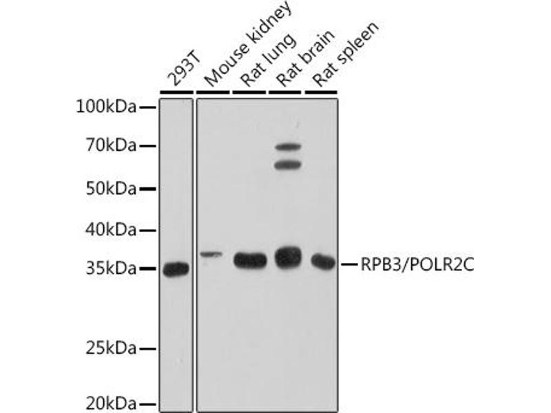 This gene encodes the third largest subunit of RNA polymerase II, the polymerase responsible for synthesizing messenger RNA in eukaryotes. The product of this gene contains a cysteine rich region and exists as a heterodimer with another polymerase subunit, POLR2J. These two subunits form a core subassembly unit of the polymerase. A pseudogene has been identified on chromosome 21. [provided by RefSeq, Jul 2008],RPB3, RPB31, hRPB33, hsRPB3,Epigenetics & Nuclear Signaling,Neurodegenerative Diseases,Neuroscience,POLR2C