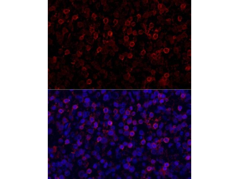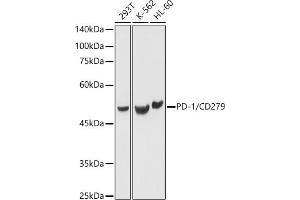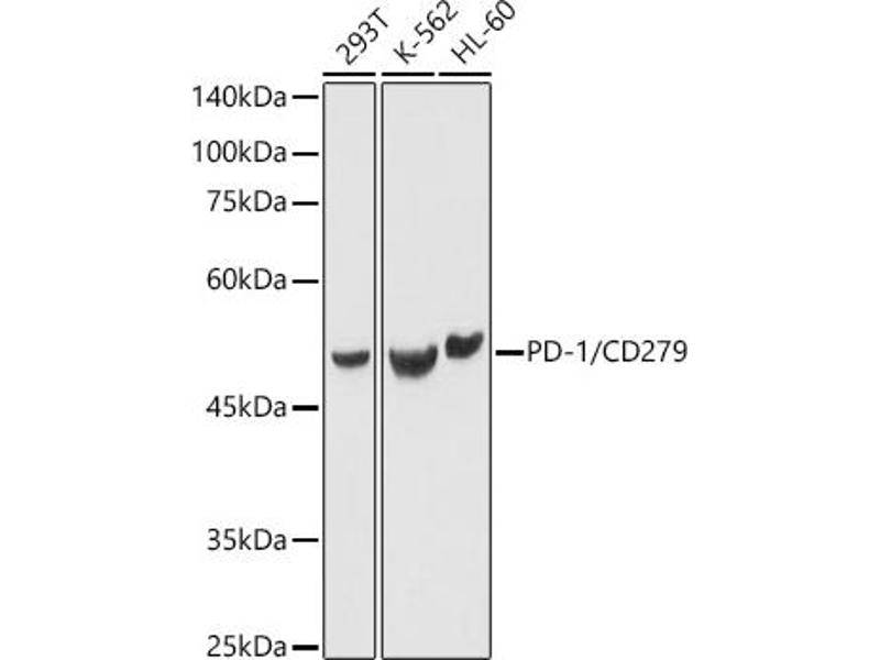 This gene encodes a cell surface membrane protein of the immunoglobulin superfamily. This protein is expressed in pro-B-cells and is thought to play a role in their differentiation. In mice, expression of this gene is induced in the thymus when anti-CD3 antibodies are injected and large numbers of thymocytes undergo apoptosis. Mice deficient for this gene bred on a BALB/c background developed dilated cardiomyopathy and died from congestive heart failure. These studies suggest that this gene product may also be important in T cell function and contribute to the prevention of autoimmune diseases.,PDCD1,CD279,PD-1,PD1,SLEB2,hPD-1,hPD-l,hSLE1,Cell Biology & Developmental Biology,Apoptosis,Immunology & Inflammation,CD markers,PD-1/CD279