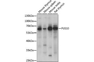 Pseudouridination, the isomerization of uridine to pseudouridine, is the most common posttranscriptional nucleotide modification found in RNA and is essential for biologic functions such as spliceosome biogenesis. Pseudouridylate synthases, such as PUS10, catalyze pseudouridination of structural RNAs, including transfer, ribosomal, and splicing RNAs. These enzymes also act as RNA chaperones, facilitating the correct folding and assembly of tRNAs (McCleverty et al., 2007 [PubMed 17900615]).,PUS10,CCDC139,DOBI,Epigenetics & Nuclear Signaling,Cell Biology & Developmental Biology,Apoptosis,Caspases,Endocrine & Metabolism,Mitochondrial metabolism,Mitochondrial translation,PUS10