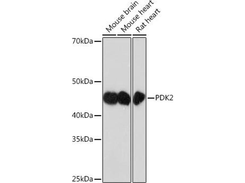 Der Kaninchen Monoklonal anti-PDK2 Antikörper wird verwendet zum Nachweis von PDK2 in Proben von Human. Er wurde validiert für WB und IHC.