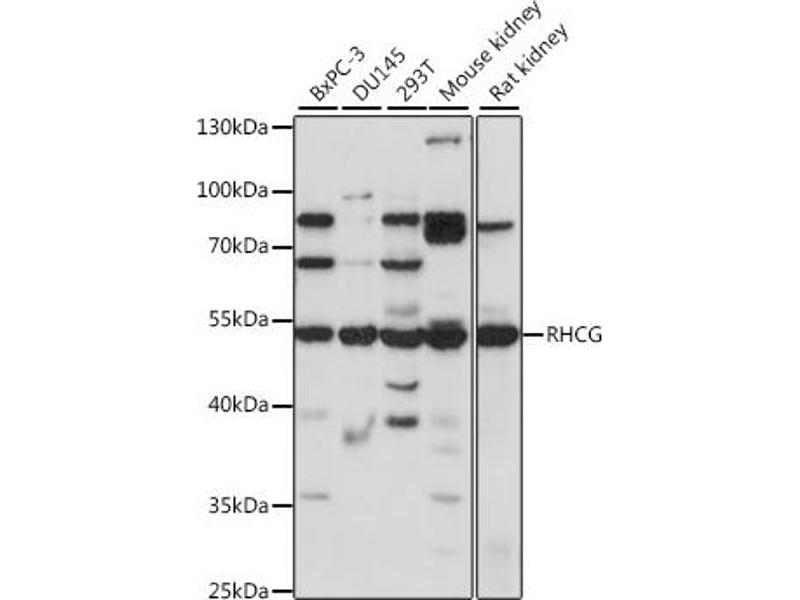 Functions as an electroneutral and bidirectional ammonium transporter. May regulate transepithelial ammonia secretion.,RHCG,C15orf6,PDRC2,RHGK,SLC42A3,Cancer,Signal Transduction,Endocrine & Metabolism,Cardiovascular,Blood,Blood Cell Antigens,RHCG