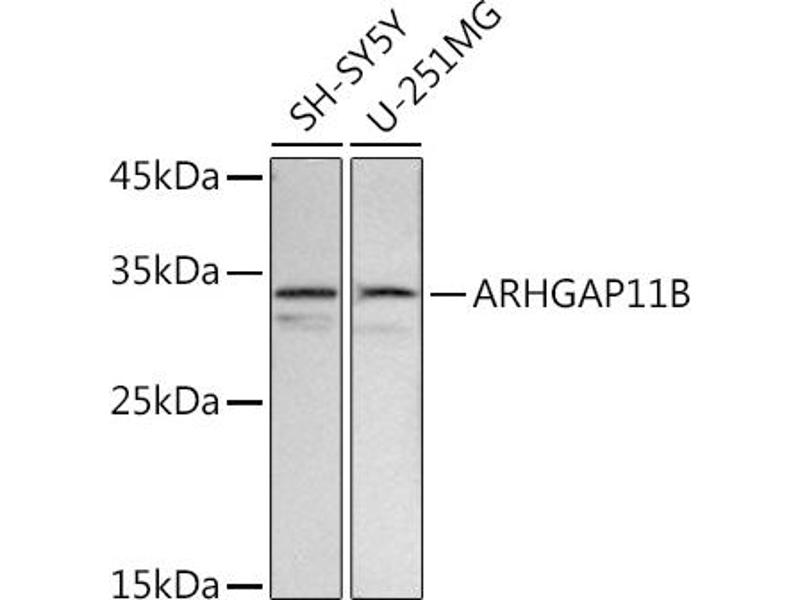 Der Kaninchen Polyklonal anti-ARHGAP11B Antikörper (ABIN7269963) detektiert spezifisch ARHGAP11B in WB.