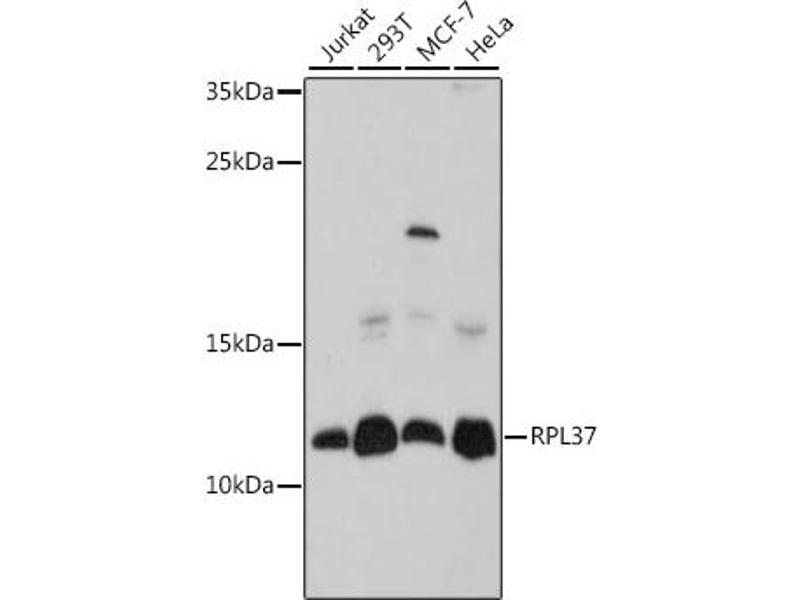 - A synthetic peptide corresponding to a sequence within amino acids 1-97 of human RPL37 (NP_000988.1).