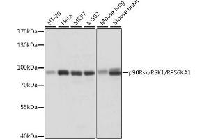 This gene encodes a member of the RSK (ribosomal S6 kinase) family of serine/threonine kinases. This kinase contains 2 nonidentical kinase catalytic domains and phosphorylates various substrates, including members of the mitogen-activated kinase (MAPK) signalling pathway. The activity of this protein has been implicated in controlling cell growth and differentiation. Alternate transcriptional splice variants, encoding different isoforms, have been characterized.,HU-1,MAPKAPK1A,RSK,RSK1,p90Rsk,RPS6KA1,Epigenetics & Nuclear Signaling,Translation Control,Regulation of eIF4 and p70 S6 Kinase,Signal Transduction,G protein signaling,G2/M DNA Damage Checkpoint,Kinase,Serine/threonine kinases,mTOR Signaling Pathway,MAPK-Erk Signaling Pathway,Cell Biology & Developmental Biology,Apoptosis,Mitochondrial Control of Apoptosis,Inhibition of Apoptosis,Cell Cycle,G2/M DNA Damage Checkpoint,Microtubules,Immunology & Inflammation,NF-kB Signaling Pathway,Neuroscience,RPS6KA1